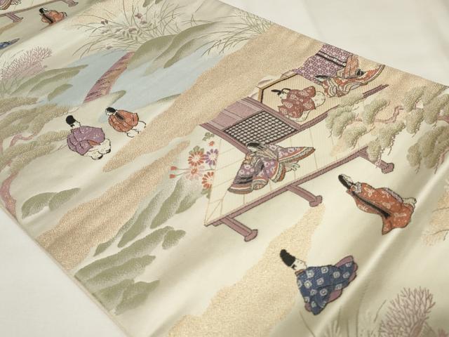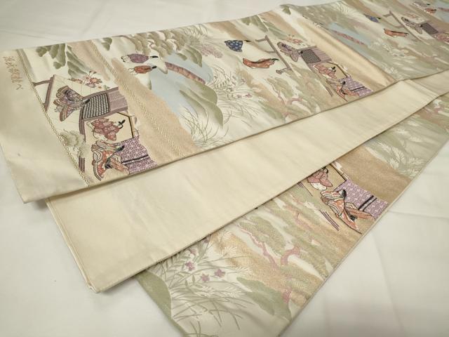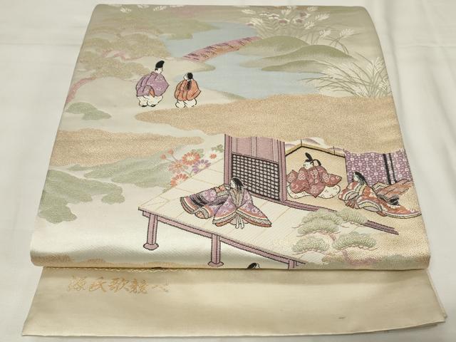 Heiwa-ya Kimono ◎ Six-Piece Pattern Obi, Karaori, Genji Song Competition, Gold Thread, Pure Silk, Excellent Item, CAAY2197in