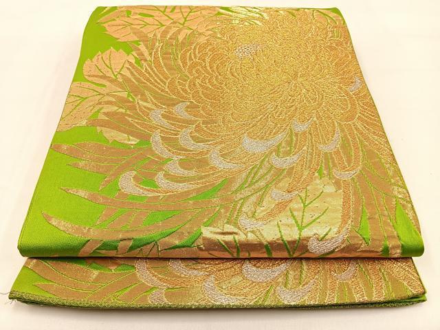 Heiwa-ya Kimono ◎ Six-Piece Pattern Obi, Ranchrysanthemum Design, Gold and Silver Thread, Pure Silk, Excellent Item, BAAW0090hj