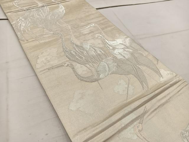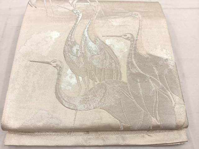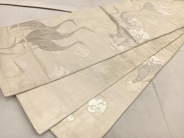 Heiwa-ya Kimono ◎ Six-Piece Pattern Obi with Cranes, Silver Thread, Pure Silk, Excellent Quality, BAAW1557mz