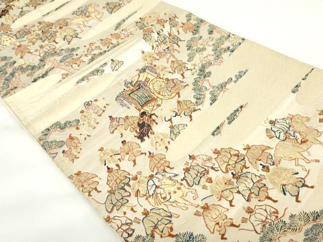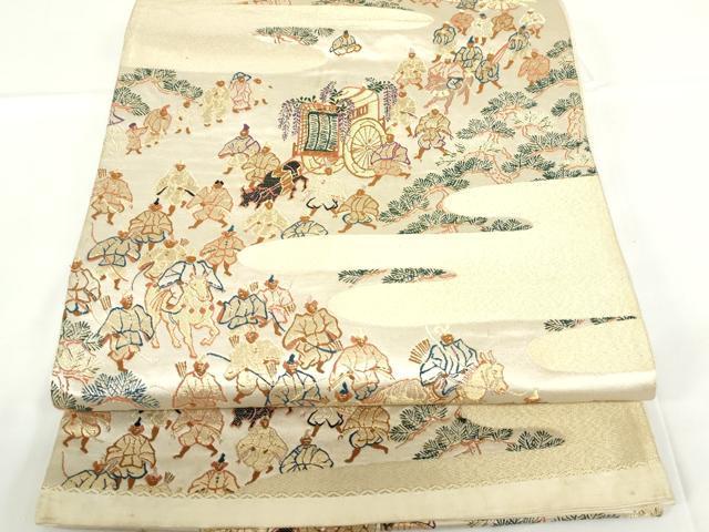 Heiwa-ya Kimono ◎ Six-way Pattern Obi, Daimyo Procession, Gold Thread, Pure Silk, Excellent Item, DAAZ5557ea