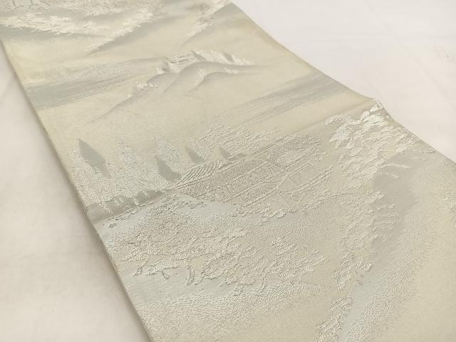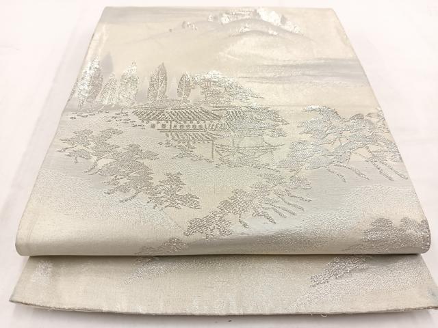 Heiwa-ya Kimono ◎ Six-way Pattern Obi, Distant Mountain Landscape Design, Silver Thread, Pure Silk, Excellent Item, BAAW2095yc