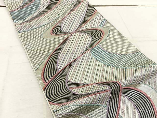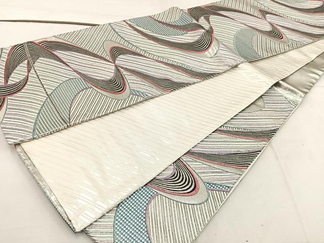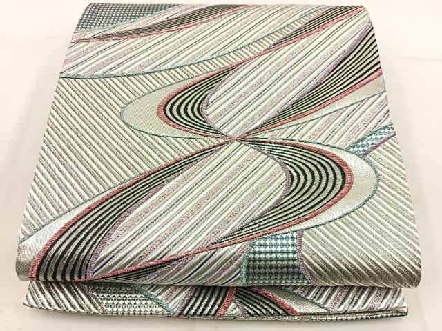 Heiwa-ya Kimono ◎ Six-way Pattern Obi, Geometric Pattern, Silver Thread, Pure Silk, Excellent Quality, BAAW1072mz