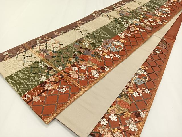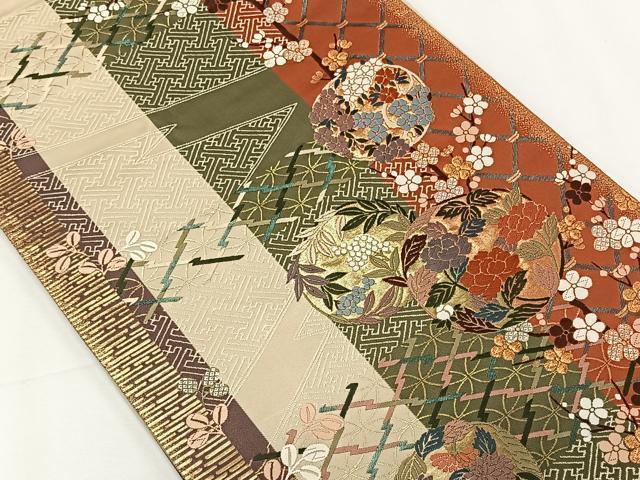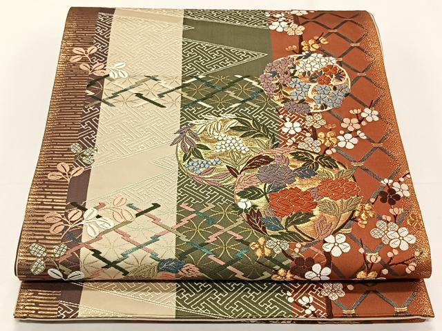 Heiwa-ya Kimono ◎ Six-way Pattern Obi, Karaori, Eight-Sleeve Brocade, Flower Circle Pattern, Gold Thread, Pure Silk, Excellent Quality, CAAY0950qv