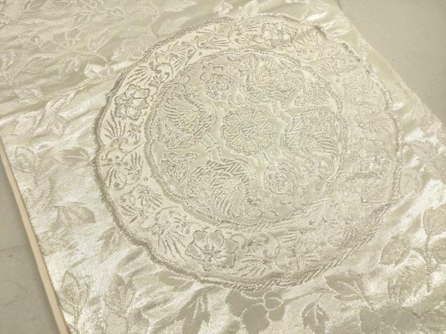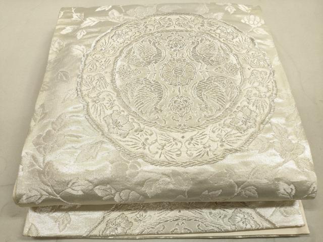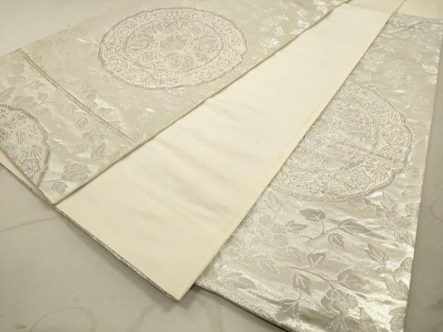 Heiwa-ya Kimono ◎ Six-way Pattern Obi, Picture Plate with Flower and Bird Design, Silver Thread, Pure Silk, Excellent Item, DABA8031xg