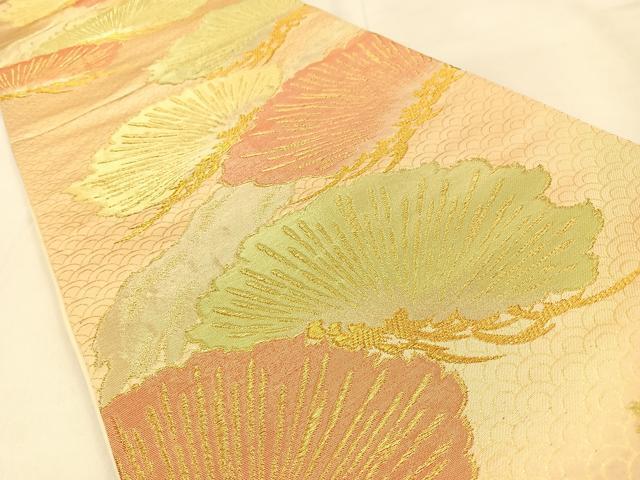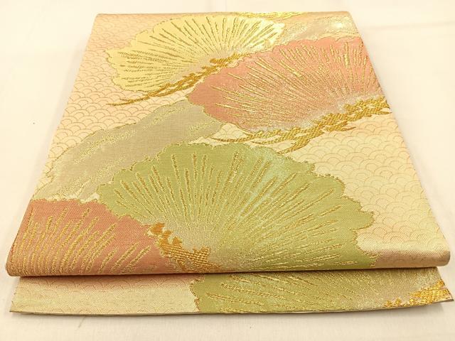 Heiwa-ya Kimono ◎ Six-way Pattern Obi, Pine Design, Gold Thread, Pure Silk, Excellent Item, BAAW0789hj
