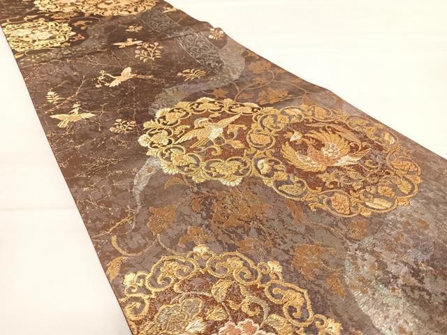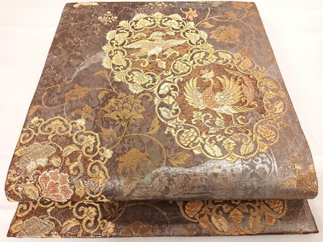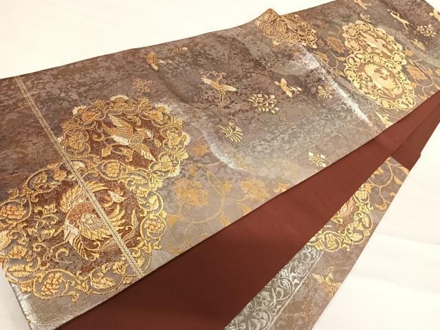 Heiwa-ya Kimono ◎ Six-way pattern obi with a round flower and bird design, gold thread, pure silk, exquisite item AABD7091yx