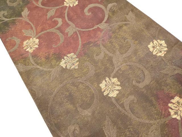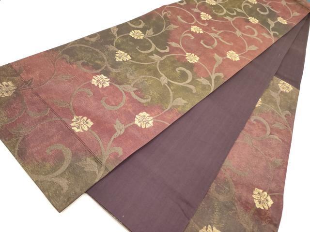 Heiwa-ya Kimono ◎ Six-way Pattern Obi with Floral Arabesque Design, Gold Thread, Pure Silk, Excellent Item, DABA6198op