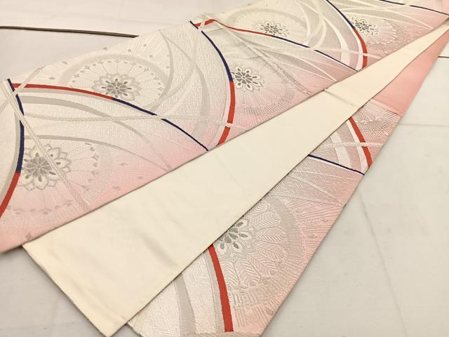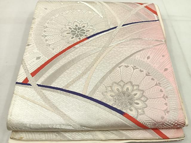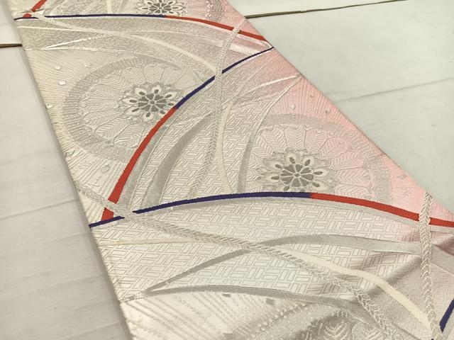 Heiwa-ya Kimono ◎ Six-way Pattern Obi with Floral Design, Silver Thread, Pure Silk, Excellent Item, BAAV9327mz