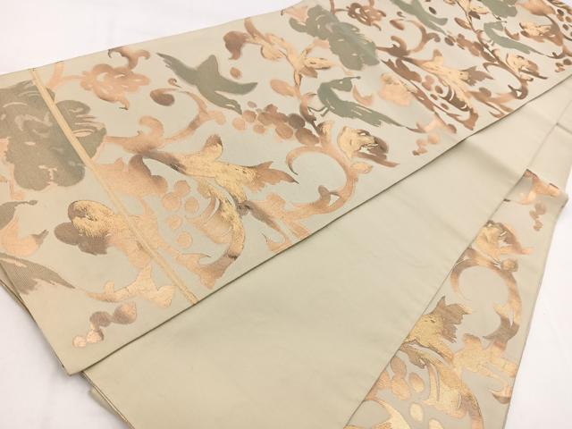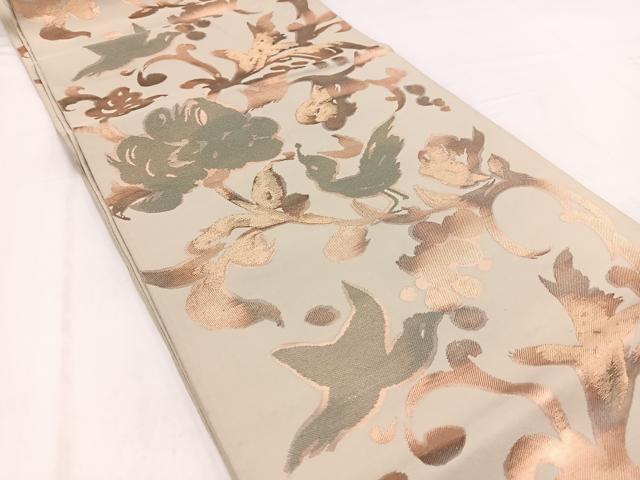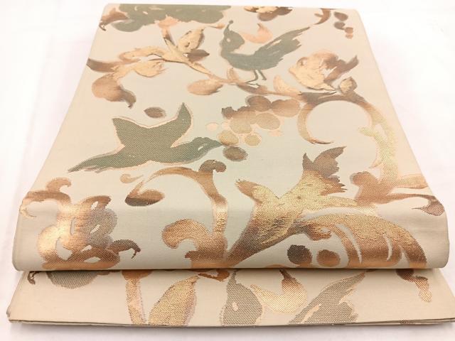 Heiwa-ya Kimono ◎ Six-way Pattern Obi with Flower and Bird Design, Gold Thread, Pure Silk, Excellent Item BAAV7804yc