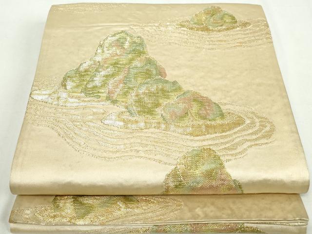 Heiwa-ya Kimono ◎ Six-way Pattern Obi with Flowing Water Landscape Design, Gold Thread, Pure Silk, Excellent Item, DABA3076qa