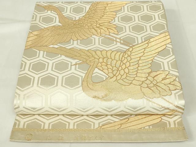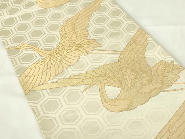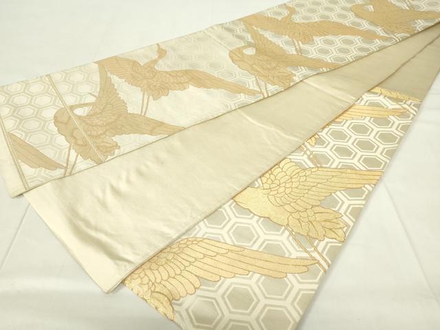 Heiwa-ya Kimono ◎ Six-way Pattern Obi with Flying Crane Design, Gold Thread, Pure Silk, Excellent Item, DAAZ9096qp