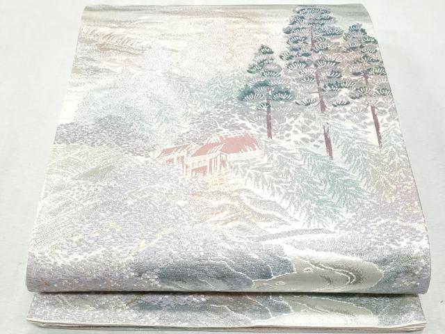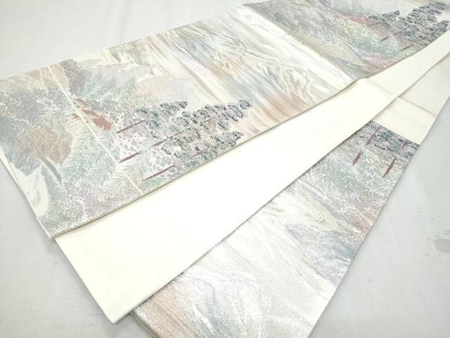 Heiwa-ya Kimono ◎ Six-way Pattern Obi with Landscape and Plant Design, Gold and Silver Thread, Pure Silk, Excellent Quality, CAAZ4909fb