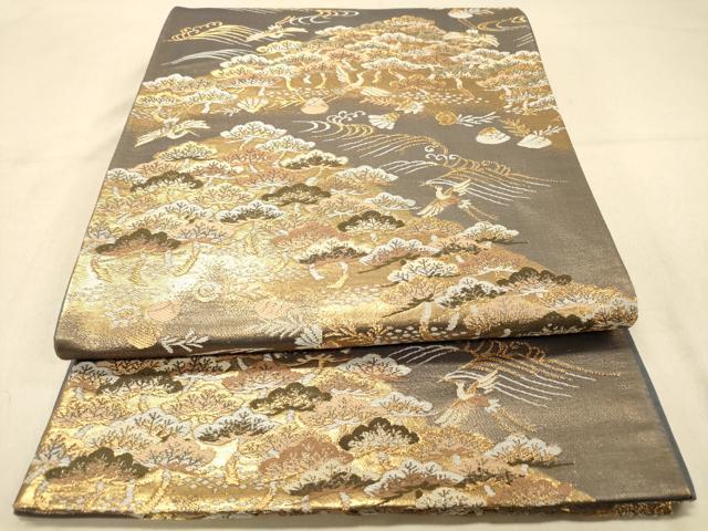 Heiwa-ya Kimono ◎ Six-way Pattern Obi with Landscape Flying Cranes and Pine Trees, Gold Thread, Pure Silk, Excellent Item, DAAZ3833jm