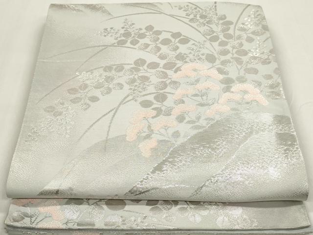 Heiwa-ya Kimono ◎ Six-way pattern obi with layered mountain flower design, silver thread, pure silk, exquisite item DAAZ8639qa