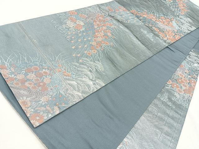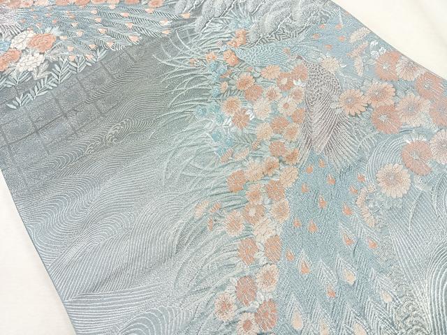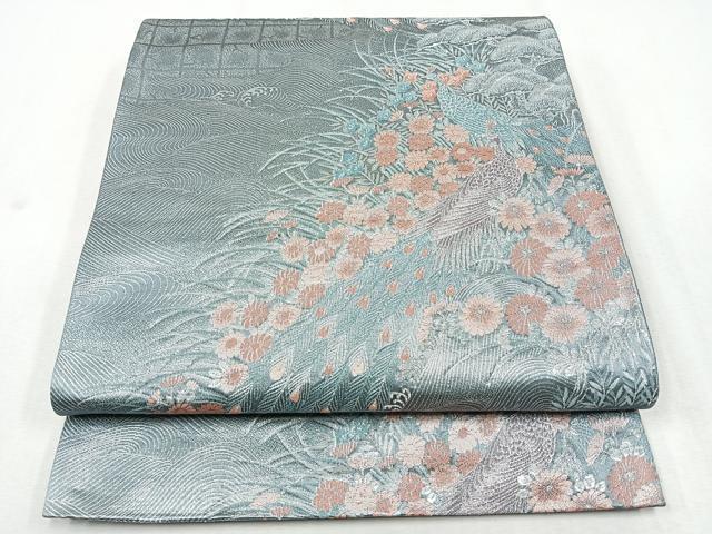 Heiwa-ya Kimono ◎ Six-way Pattern Obi with Peacock and Flower Design, Silver Thread, Pure Silk, Excellent Quality, CAAZ7490nb