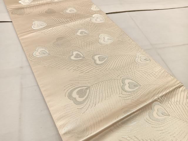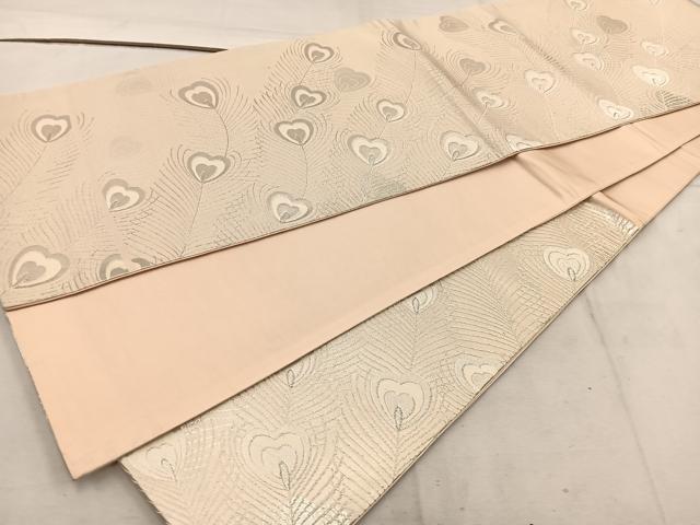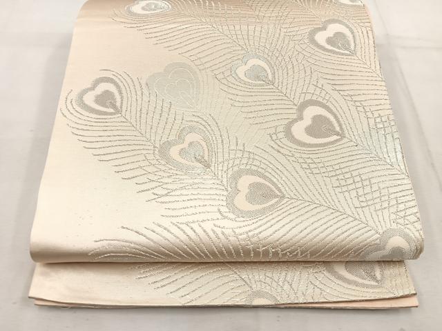 Heiwa-ya Kimono ◎ Six-way Pattern Obi with Peacock Feathers and Silver Thread, Pure Silk, Excellent Item, BAAW1067mz