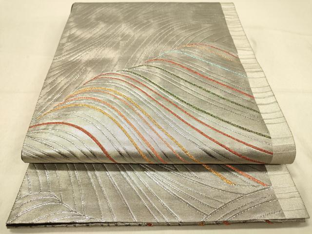 Heiwa-ya Kimono ◎ Six-way Pattern Obi with Standing Wave Design and Four-Dimensional Foil, Pure Silk, Excellent Item, DAAZ4000jm