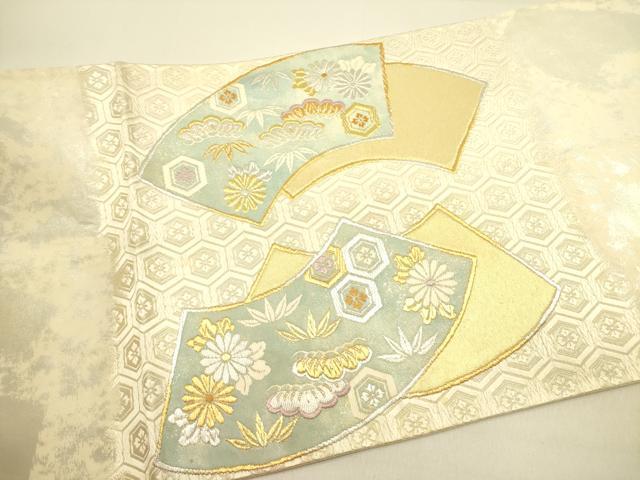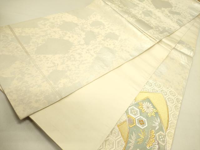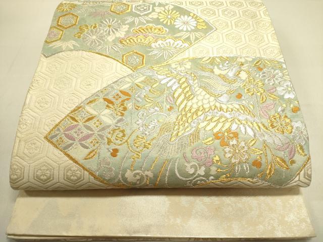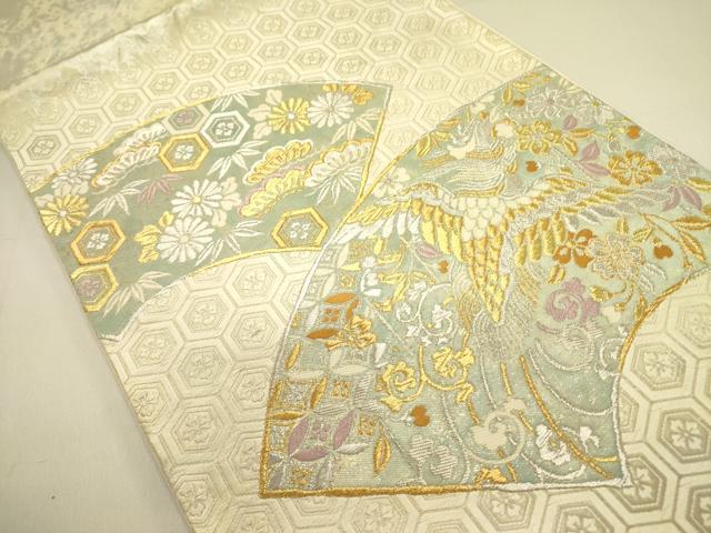 Heiwa-ya Kimono ◎ Taiko Drum Pattern Obi (Sash) - Karaori (Chinese Weave) - Ground Paper with Phoenix and Flower Design - Gold and Silver Thread - Pure Silk - Excellent Item - DABA6519op