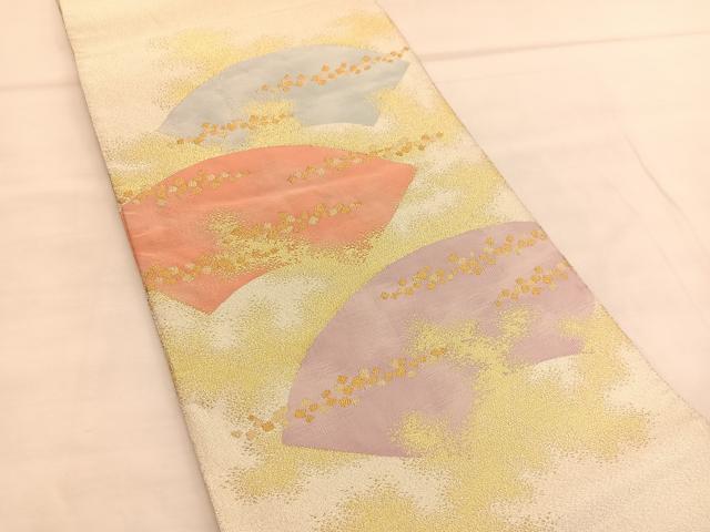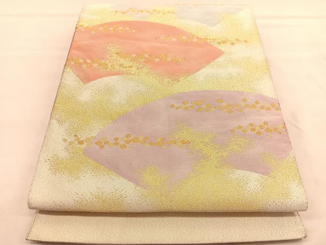 Heiwa-ya Kimono ◎ Taiko Drum Pattern Obi (Sash) - Tsumugi (Sewn) - Scattered Gold Foil Pattern on Paper - Pure Silk - Excellent Item BAAU1367hv