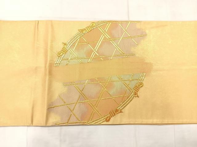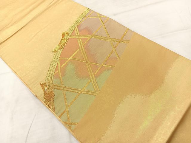 Heiwa-ya Kimono ◎ Taiko Drum Pattern Obi with Koma Embroidery and Higashi-Kasumi Pattern, Gold Thread, Pure Silk, Excellent Quality, AABC9142uk
