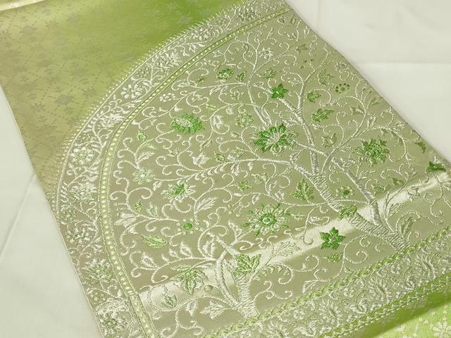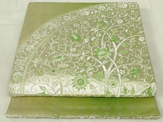 Heiwa-ya Kimono ◎ Taiko Pattern Obi with Flower Diamond Pattern, Silver Thread, Pure Silk, Excellent Quality, DABA5722qp