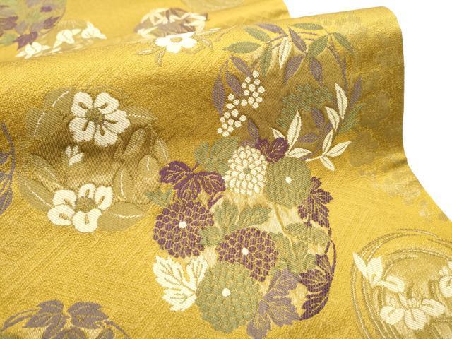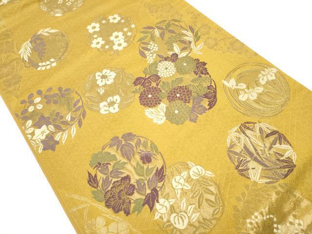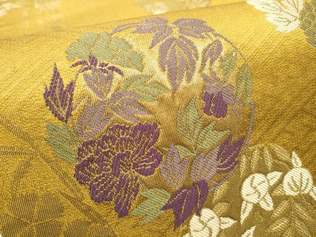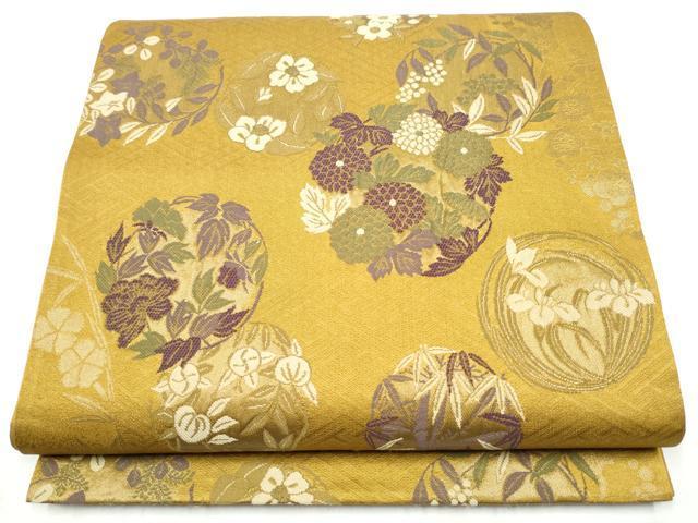 Heiwa-ya Kimono ● COMME CA DU MODE Six-Piece Pattern Obi with Flower and Grass Circle Design, Gold Thread, Pure Silk, Excellent Quality, CABB5985hy