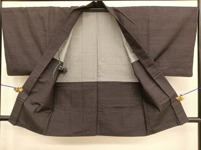 Heiwa-ya Kimono ● Men's Tsumugi Ensemble Kasumi Pattern Pure Silk Excellent Item BAAT6632hv