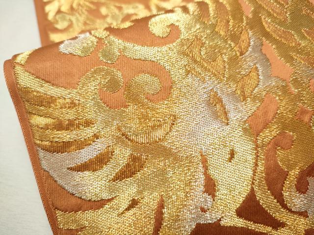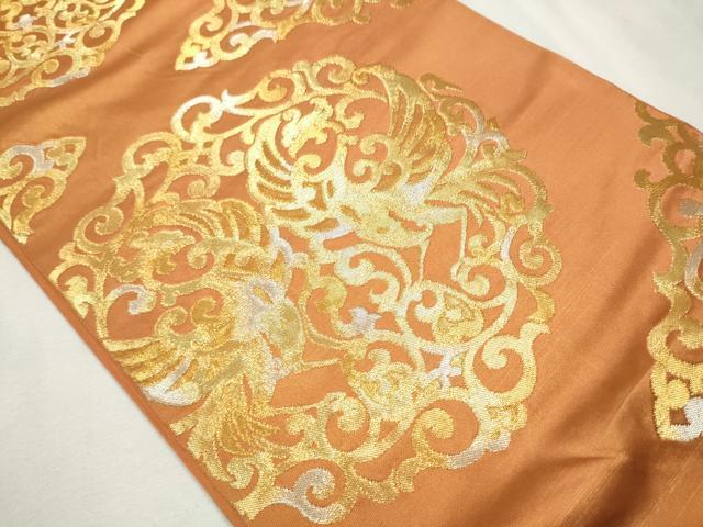 Heiwa-ya Kimono ● Nishijin Kawashima Textiles Six-way pattern Genuine fukuro obi Facing bird arabesque pattern Gold and silver thread Pure silk Excellent item CAAU9539hy