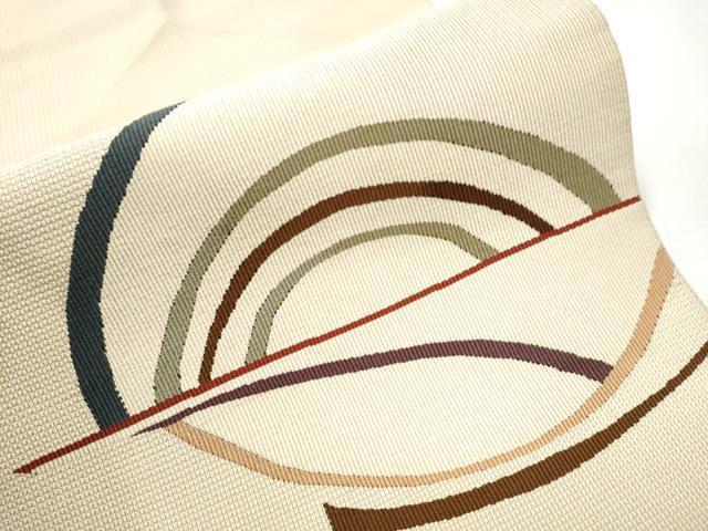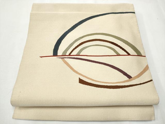 Heiwa-ya Kimono: 8-inch Nagoya Obi (Sash), Sukui Weave, Geometric Pattern, Pure Silk, Excellent Quality, CABA1057hy