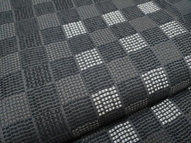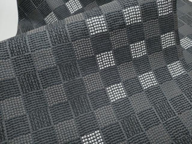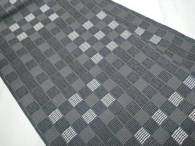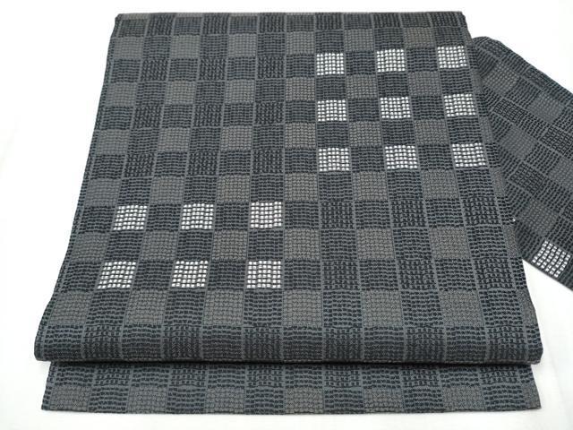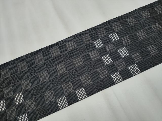 Heiwa-ya Kimono: 9-inch Nagoya Obi (Checkered Pattern) with Silver Thread, Pure Silk, Excellent Quality, CABA1063hy