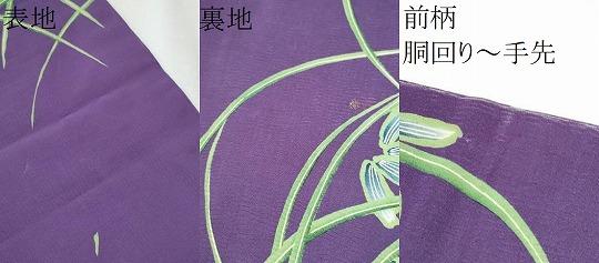 状態は接写画像のように表地所々にヤケ、裏地・前柄・胴回り〜手先に汚れがございます。