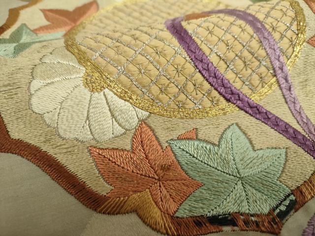 Heiwa-ya Kimono: Antique Taisho Romantic Kimono, featuring the three great Chinese embroidery styles, Sagara embroidery, Maru Obi (circle obi), Koma embroidery, fully hand-embroidered, mirror-back floral design, gold and silver thread, pure silk, exquisite workmanship, DABA1729ps