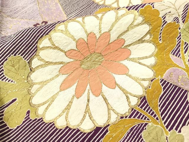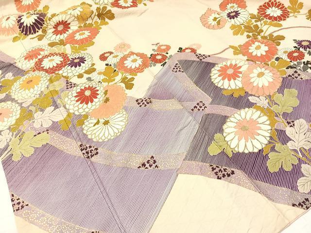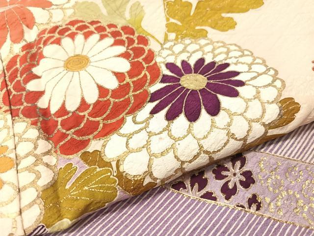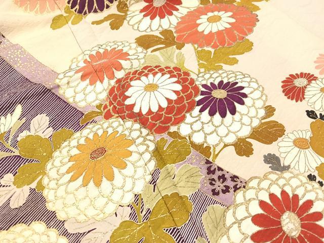Heiwa-ya Kimono: Antique Taisho Romantic Visiting Kimono with Chrysanthemum Design and Gold Accents, Pure Silk, Excellent Condition, CABB5157vp