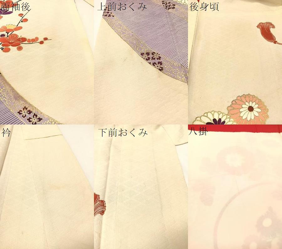 両袖後・上前おくみ・後身頃・衿・下前おくみ・八掛に薄い汚れがございます。