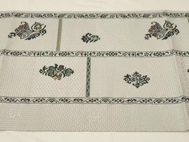 仏具のひとつである独鈷、華皿を基にした幾何学模様が織られています。