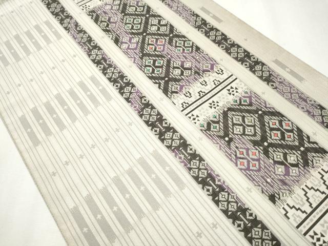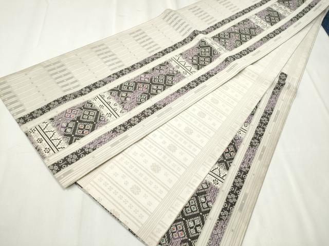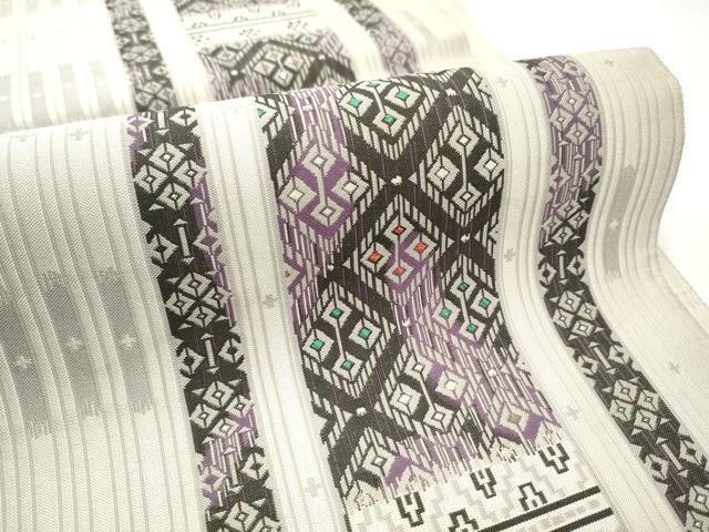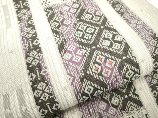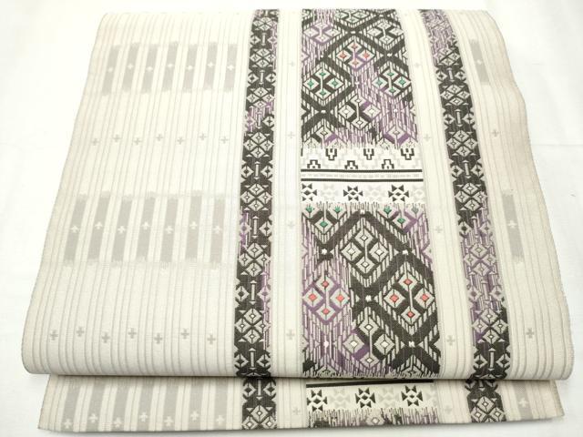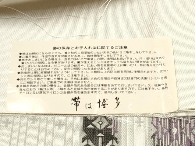 Heiwa-ya Kimono: Authentic Chikuzen Hakata-ori Six-Pass Pattern Obi, Kissho Mado, with Hem, Pure Silk, Excellent Quality, CABB5764hy
