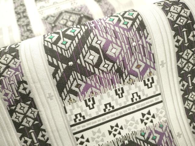 仏具のひとつである独鈷、華皿を基にした幾何学模様が織られています。