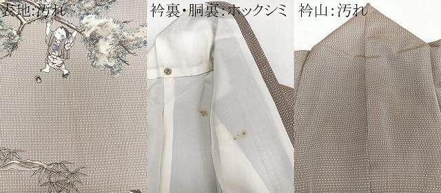 状態は接写画像のように表地・衿裏・胴裏・衿山に汚れ、ホックシミ、汚れがございます。