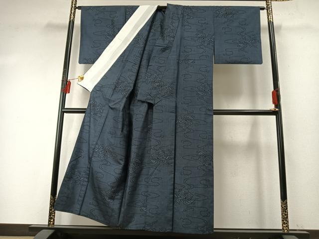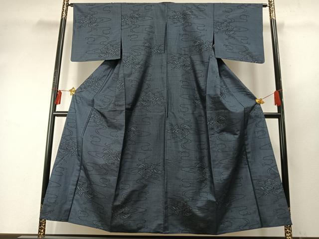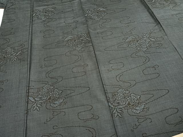 Heiwa-ya Kimono: Authentic Oshima Tsumugi Kimono, Single Layer, Flowing Water and Flower Pattern, Pure Silk, Excellent Quality, AABE5672fy