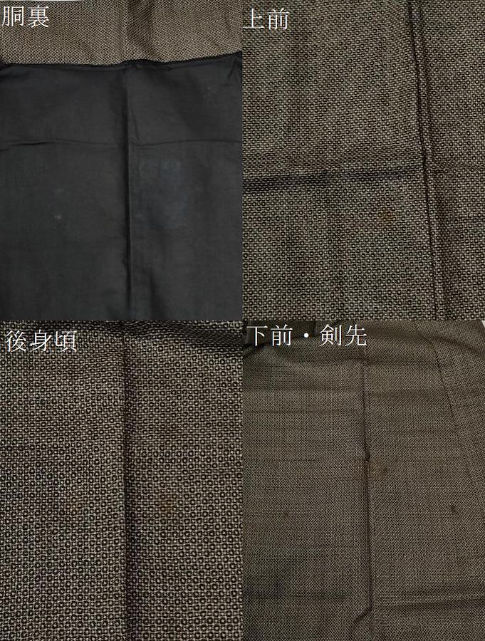 状態は接写画像のように胴裏・上前・後身頃・下前・剣先に汚れがございますが
