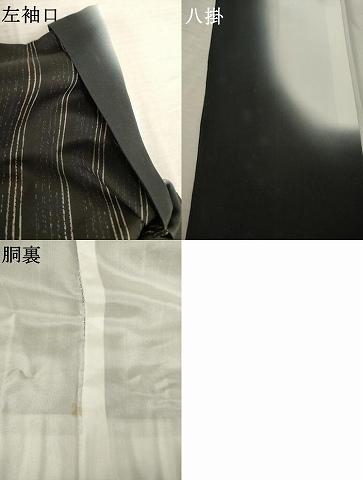 状態は接写画像のように左袖口・八掛に薄い汚れ、胴裏にシミと糸ヨレがございますが