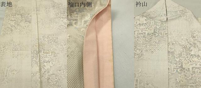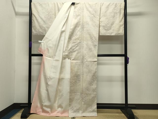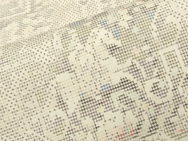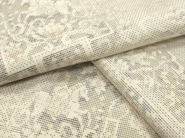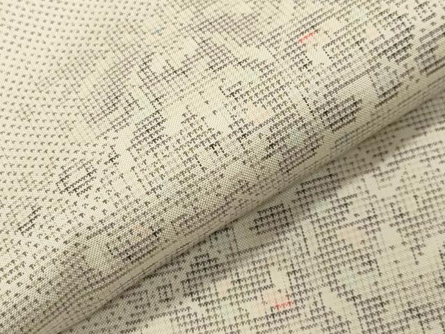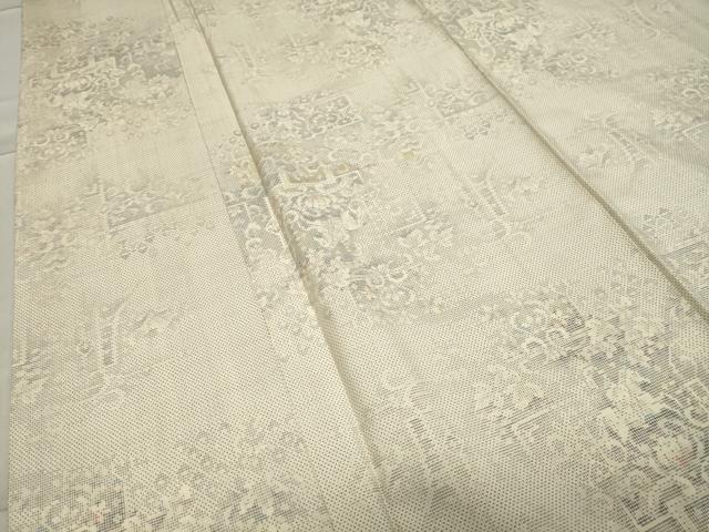 Heiwa-ya Kimono: Authentic Oshima Tsumugi Silk, White Oshima, 9 Marks, Floral Arabesque Pattern, Pure Silk, Excellent Quality, CABB0162gh