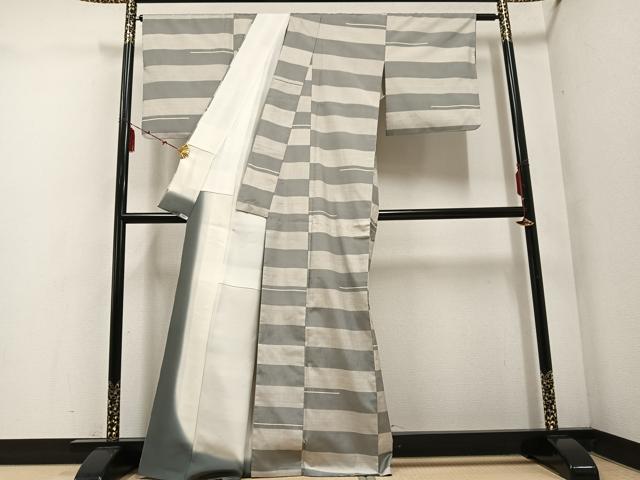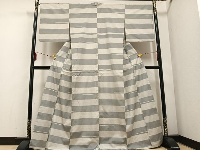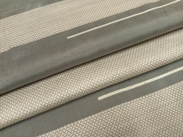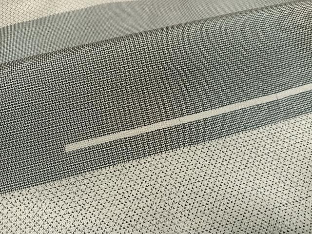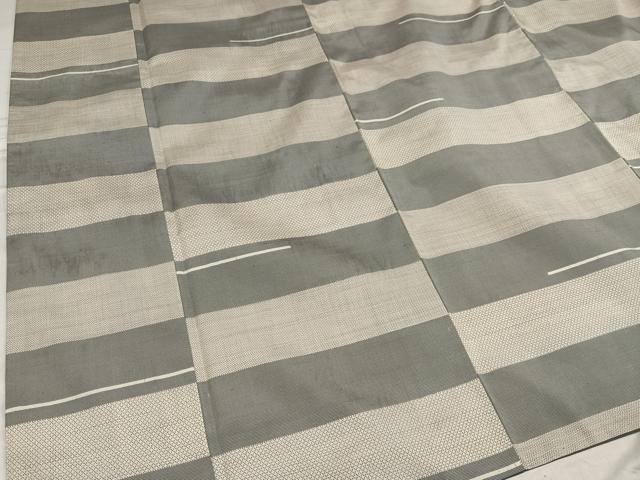 Heiwa-ya Kimono: Authentic Oshima Tsumugi Silk, White Oshima, Katas 9 Mark, Horizontal Stripes, Pure Silk, Excellent Quality, AABE8117ph