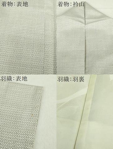 羽織の状態は接写画像のように表地所々に若干の薄い汚れ、羽裏に若干の薄いアクがございます。