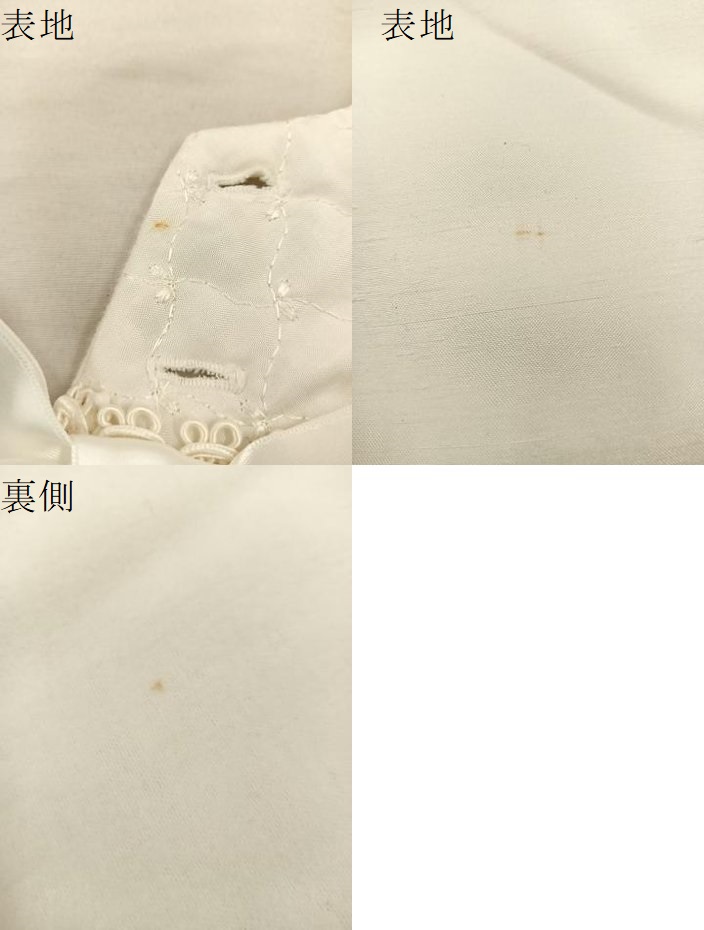 コート【綿】の状態は接写画像のように表地・裏側に薄い汚れがございます。