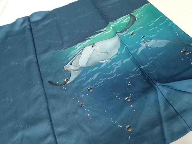 立体的な水玉を描くことで有名な染色作家・青木龍雲氏の作品です。