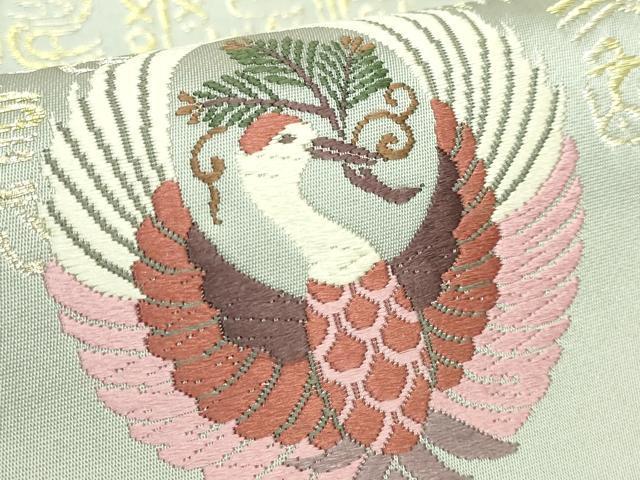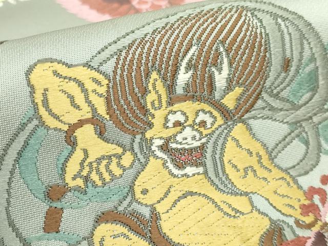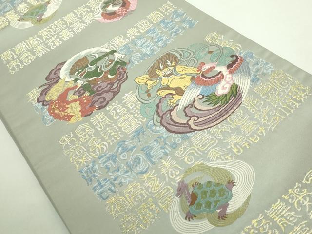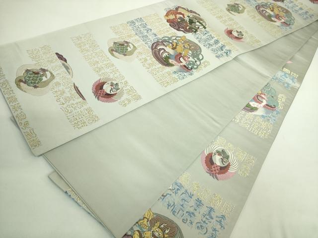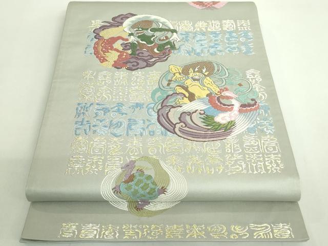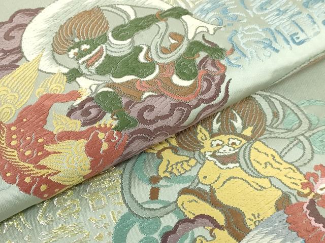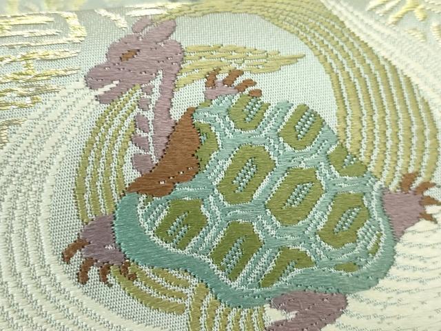 Heiwa-ya Kimono: Exquisite Six-Piece Pattern Obi (Sash), Karaori Weave, Wind God, Thunder God, Crane, Raincoat, and Turtle Design, Gold and Silver Thread, Excellent Item, DZAB1836kh6