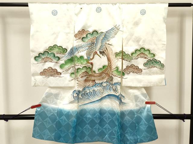 Heiwa-ya Kimono for Shrine Visits, Boys, Celebration Kimono, Baby Kimono, First Kimono, Noshime (Sealed), Embroidered, Flying Crane, Standing Waves, Pine Design, Gradient Dye, Gold Accents, Washable Kimono, DAAS9317ma