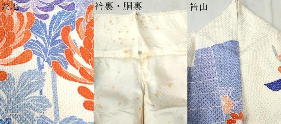 表地所々に薄いシミ、衿裏・胴裏にアク汚れ・衿山に薄い汚れがございます。