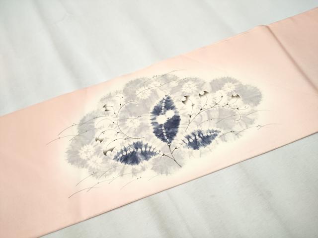 Heiwa-ya Kimono: Full Member of the Japan Crafts Council. Ogura's Shibori (Dyed Fabric) and Tsujigahana (Flower) Design by Kenryo Ogura. Shiose (Shiose) 9-inch Nagoya Obi (Sash). Shibori (Dyed Fabric) and Tsujigahana (Flower) Design. Pure Silk. Excellent Quality. CABB5738hy